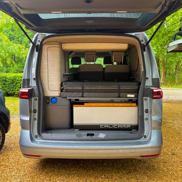 De laadcapaciteit van de lade is 100kg afhankelijk van de ruimte in uw campervan of auto. Calicamp is beschikbaar voor heel wat wagens met draaideuren achteraan (Mercedes Sprinter, campervans op Fiat/ VW/ Ford basis). Wagens met een kofferklep hebben nog meer mogelijkheden (VW T4/ T5/ T6/ T7 Multivan /California, Mercedes V-Klasse/ Marco Polo, Ford Transit Custom, ...). Een kofferruimte van 730mm breed, 250mm hoog, en 750mm diep volstaat. De lade wordt op maat gemaakt, zodat alle beschikbare ruimte kan worden benut. Installatie gebeurt via de zetelrails of montagepunten in de vloer van het voertuig. De lade kan eenvoudig uit de wagen worden genomen in slechts 2 minuten.